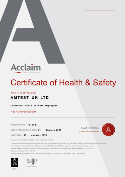 At Amtest UK, our accreditations demonstrate our commitment to quality, safety, and reliability — giving clients confidence in a trusted, industry-compliant testing partner.